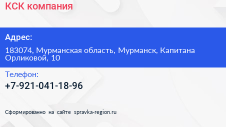 КСК, компания по адресу 183074, Мурманская область, Мурманск, Капитана Орликовой, 10 в дальнейшем Организация, размещена в следующих категориях: