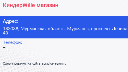 КиндерWille, магазин по адресу 183038, Мурманская область, Мурманск, проспект Ленина, 48 в дальнейшем Организация, размещена в следующих категориях: