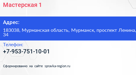 Мастерская №1 по адресу 183038, Мурманская область, Мурманск, проспект Ленина, 34 в дальнейшем Организация, размещена в следующих категориях: