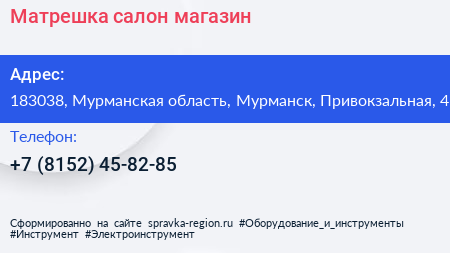 Матрешка, салон-магазин по адресу 183038, Мурманская область, Мурманск, Привокзальная, 4 в дальнейшем Организация, размещена в следующих категориях: