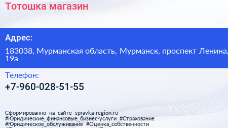 Тотошка, магазин по адресу 183038, Мурманская область, Мурманск, проспект Ленина, 19а в дальнейшем Организация, размещена в следующих категориях: