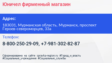 Юничел, фирменный магазин по адресу 183031, Мурманская область, Мурманск, проспект Героев-североморцев, 33а в дальнейшем Организация, размещена в следующих категориях: