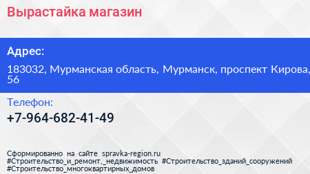 Вырастайка, магазин по адресу 183032, Мурманская область, Мурманск, проспект Кирова, 56 в дальнейшем Организация, размещена в следующих категориях:
