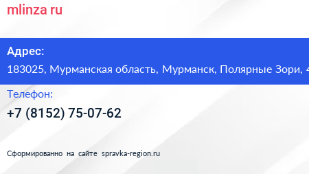 mlinza.ru по адресу 183025, Мурманская область, Мурманск, Полярные Зори, 4 в дальнейшем Организация, размещена в следующих категориях: