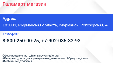 Галамарт, магазин по адресу 183039, Мурманская область, Мурманск, Рогозерская, 4 в дальнейшем Организация, размещена в следующих категориях:
