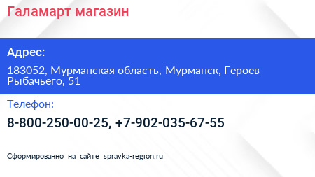 Галамарт, магазин по адресу 183052, Мурманская область, Мурманск, Героев Рыбачьего, 51 в дальнейшем Организация, размещена в следующих категориях: