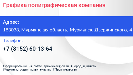 Графика, полиграфическая компания по адресу 183038, Мурманская область, Мурманск, Дзержинского, 4 в дальнейшем Организация, размещена в следующих категориях: