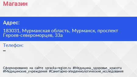 Магазин по адресу 183031, Мурманская область, Мурманск, проспект Героев-североморцев, 33а в дальнейшем Организация, размещена в следующих категориях: