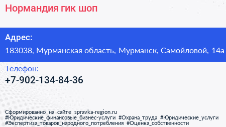 Нормандия, гик-шоп по адресу 183038, Мурманская область, Мурманск, Самойловой, 14а в дальнейшем Организация, размещена в следующих категориях: