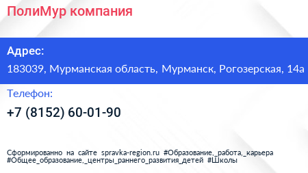 ПолиМур, компания по адресу 183039, Мурманская область, Мурманск, Рогозерская, 14а в дальнейшем Организация, размещена в следующих категориях: