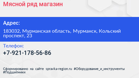 Мясной ряд, магазин по адресу 183032, Мурманская область, Мурманск, Кольский проспект, 23 в дальнейшем Организация, размещена в следующих категориях: