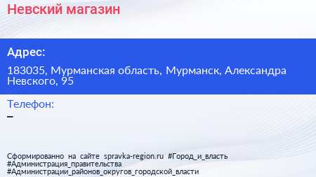 Невский, магазин по адресу 183035, Мурманская область, Мурманск, Александра Невского, 95 в дальнейшем Организация, размещена в следующих категориях: