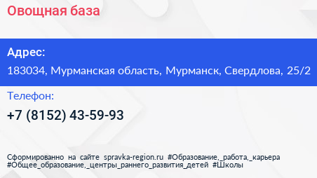Овощная база по адресу 183034, Мурманская область, Мурманск, Свердлова, 25/2 в дальнейшем Организация, размещена в следующих категориях: