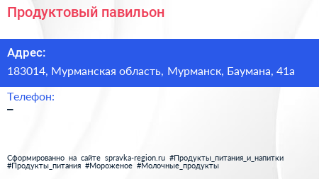 Продуктовый павильон по адресу 183014, Мурманская область, Мурманск, Баумана, 41а в дальнейшем Организация, размещена в следующих категориях: