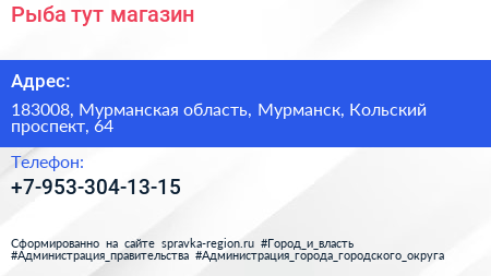 Рыба тут!, магазин по адресу 183008, Мурманская область, Мурманск, Кольский проспект, 64 в дальнейшем Организация, размещена в следующих категориях: