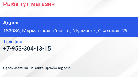 Рыба тут!, магазин по адресу 183036, Мурманская область, Мурманск, Скальная, 29 в дальнейшем Организация, размещена в следующих категориях: