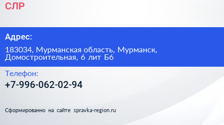 СЛР по адресу 183034, Мурманская область, Мурманск, Домостроительная, 6 лит Б6 в дальнейшем Организация, размещена в следующих категориях: