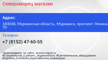 Североморец, магазин по адресу 183038, Мурманская область, Мурманск, проспект Ленина, 70 в дальнейшем Организация, размещена в следующих категориях: