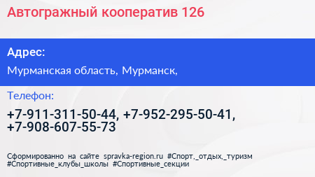 Автогражный кооператив №126 по адресу Мурманская область, Мурманск, в дальнейшем Организация, размещена в следующих категориях: