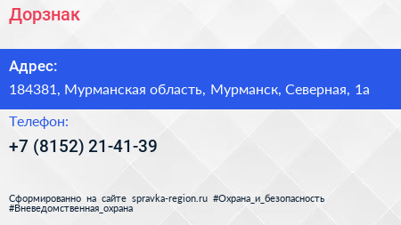 Дорзнак по адресу 184381, Мурманская область, Мурманск, Северная, 1а в дальнейшем Организация, размещена в следующих категориях:
