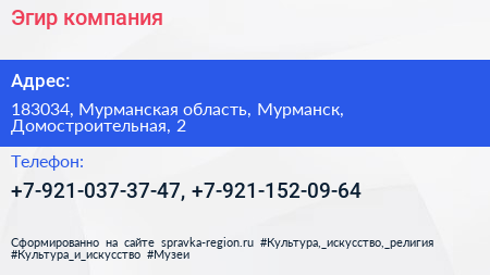 Эгир, компания по адресу 183034, Мурманская область, Мурманск, Домостроительная, 2 в дальнейшем Организация, размещена в следующих категориях: