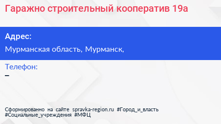 Гаражно-строительный кооператив №19а по адресу Мурманская область, Мурманск, в дальнейшем Организация, размещена в следующих категориях: