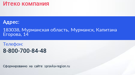 Итеко, компания по адресу 183038, Мурманская область, Мурманск, Капитана Егорова, 14 в дальнейшем Организация, размещена в следующих категориях: