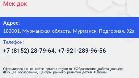 Мск-док по адресу 183001, Мурманская область, Мурманск, Подгорная, 92а в дальнейшем Организация, размещена в следующих категориях: