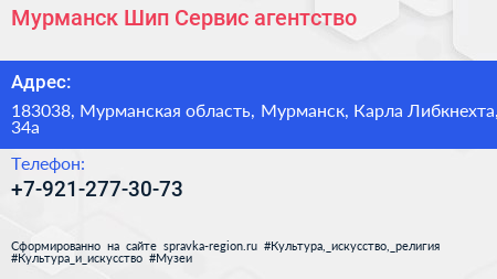 Мурманск Шип Сервис, агентство по адресу 183038, Мурманская область, Мурманск, Карла Либкнехта, 34а в дальнейшем Организация, размещена в следующих категориях: