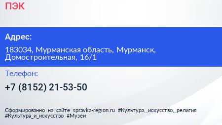ПЭК по адресу 183034, Мурманская область, Мурманск, Домостроительная, 16/1 в дальнейшем Организация, размещена в следующих категориях:
