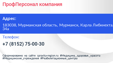 ПрофПерсонал, компания по адресу 183038, Мурманская область, Мурманск, Карла Либкнехта, 34а в дальнейшем Организация, размещена в следующих категориях: