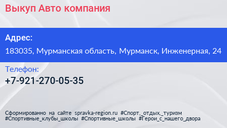 Выкуп Авто, компания по адресу 183035, Мурманская область, Мурманск, Инженерная, 24 в дальнейшем Организация, размещена в следующих категориях: