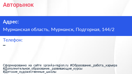 Авторынок по адресу Мурманская область, Мурманск, Подгорная, 144/2 в дальнейшем Организация, размещена в следующих категориях: