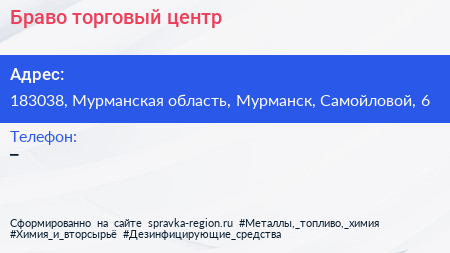 Браво, торговый центр по адресу 183038, Мурманская область, Мурманск, Самойловой, 6 в дальнейшем Организация, размещена в следующих категориях: