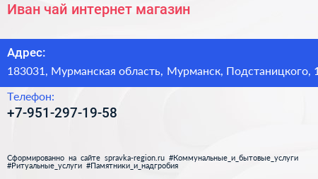 Иван-чай, интернет-магазин по адресу 183031, Мурманская область, Мурманск, Подстаницкого, 1 в дальнейшем Организация, размещена в следующих категориях: