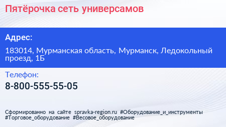 Пятёрочка, сеть универсамов по адресу 183014, Мурманская область, Мурманск, Ледокольный проезд, 1Б в дальнейшем Организация, размещена в следующих категориях: