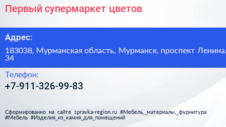 Первый супермаркет цветов по адресу 183038, Мурманская область, Мурманск, проспект Ленина, 34 в дальнейшем Организация, размещена в следующих категориях: