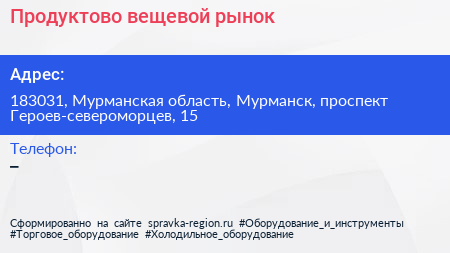 Продуктово-вещевой рынок по адресу 183031, Мурманская область, Мурманск, проспект Героев-североморцев, 15 в дальнейшем Организация, размещена в следующих категориях: