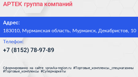 АРТЕК, группа компаний по адресу 183010, Мурманская область, Мурманск, Декабристов, 10 в дальнейшем Организация, размещена в следующих категориях: