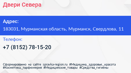 Двери Севера по адресу 183031, Мурманская область, Мурманск, Свердлова, 11 в дальнейшем Организация, размещена в следующих категориях: