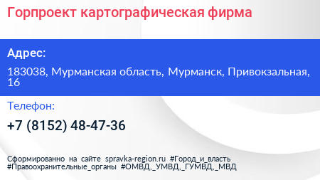 Горпроект, картографическая фирма по адресу 183038, Мурманская область, Мурманск, Привокзальная, 16 в дальнейшем Организация, размещена в следующих категориях: