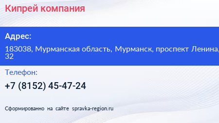 Кипрей, компания по адресу 183038, Мурманская область, Мурманск, проспект Ленина, 32 в дальнейшем Организация, размещена в следующих категориях: