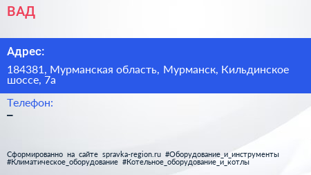 ВАД по адресу 184381, Мурманская область, Мурманск, Кильдинское шоссе, 7а в дальнейшем Организация, размещена в следующих категориях: