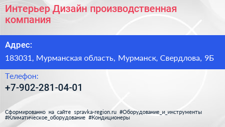 Интерьер-Дизайн, производственная компания по адресу 183031, Мурманская область, Мурманск, Свердлова, 9Б в дальнейшем Организация, размещена в следующих категориях: