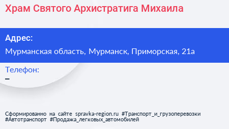 Храм Святого Архистратига Михаила по адресу Мурманская область, Мурманск, Приморская, 21а в дальнейшем Организация, размещена в следующих категориях: