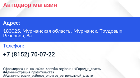 Автодвор, магазин по адресу 183025, Мурманская область, Мурманск, Трудовых Резервов, 8а в дальнейшем Организация, размещена в следующих категориях: