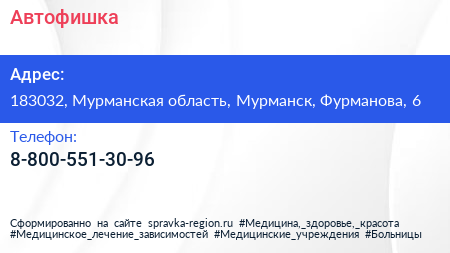 Автофишка по адресу 183032, Мурманская область, Мурманск, Фурманова, 6 в дальнейшем Организация, размещена в следующих категориях: