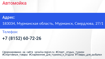Автомойка по адресу 183034, Мурманская область, Мурманск, Свердлова, 27/1 в дальнейшем Организация, размещена в следующих категориях: