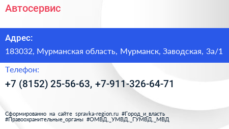 Автосервис по адресу 183032, Мурманская область, Мурманск, Заводская, 3а/1 в дальнейшем Организация, размещена в следующих категориях: