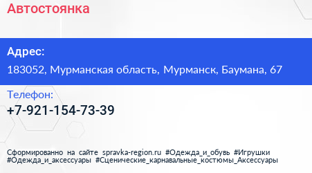 Автостоянка по адресу 183052, Мурманская область, Мурманск, Баумана, 67 в дальнейшем Организация, размещена в следующих категориях: